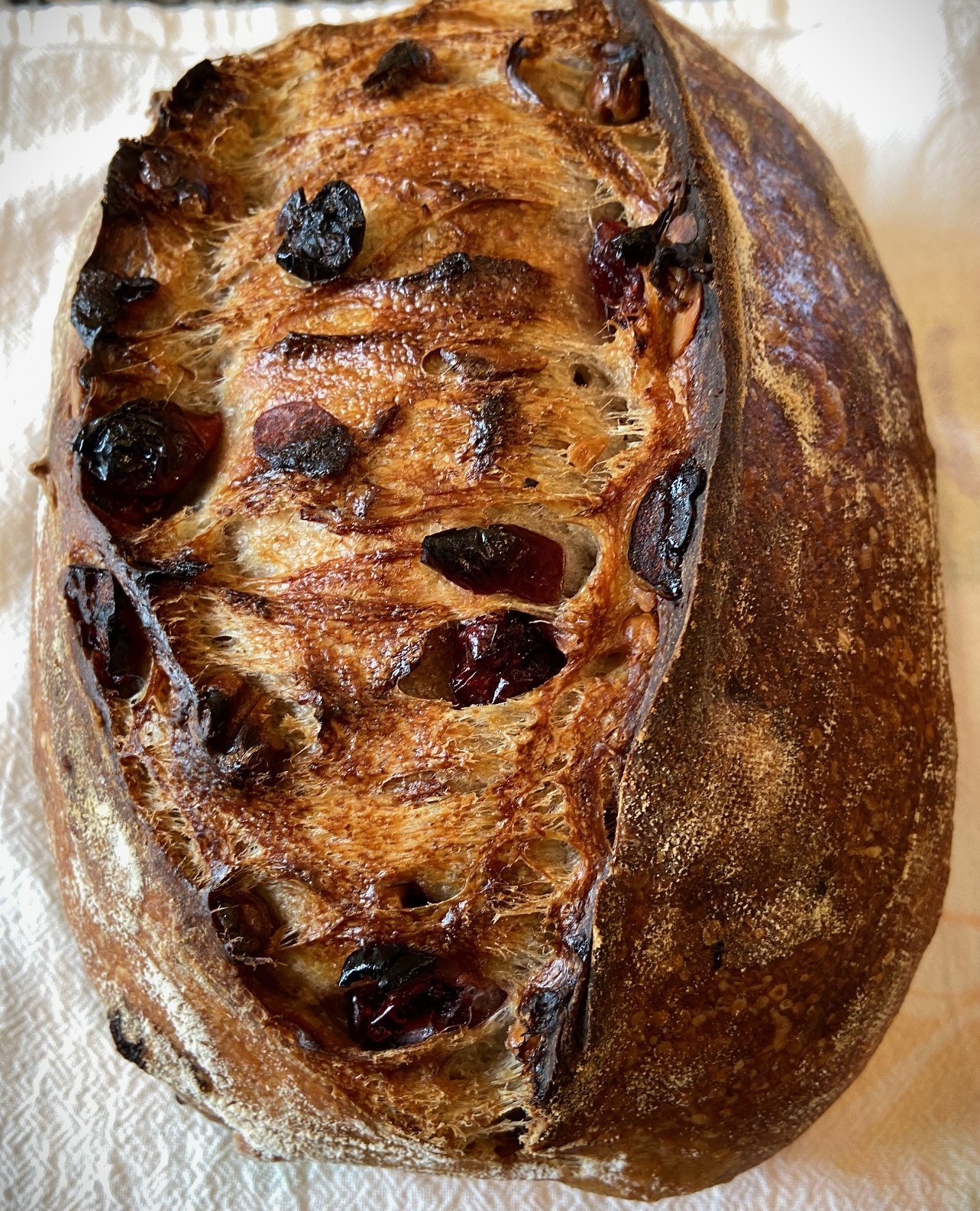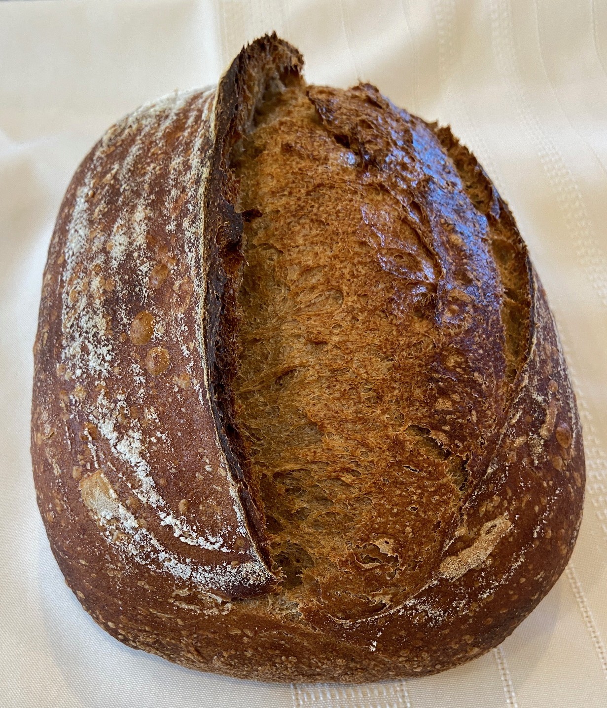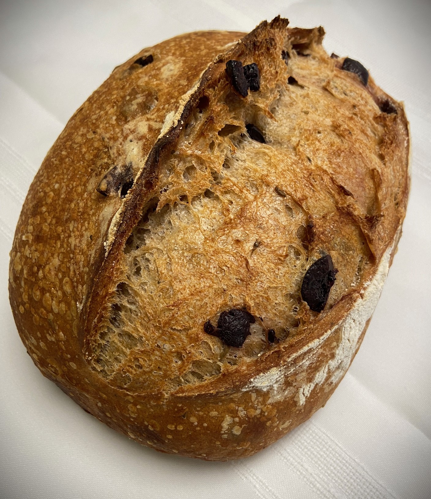 This was a request from my husband. When toasted and topped with butter it brought him back to his childhood. It is made in the same sourdough style as the other loaves. No added sugars or sweeteners, just the raisins.