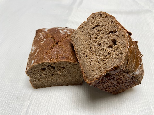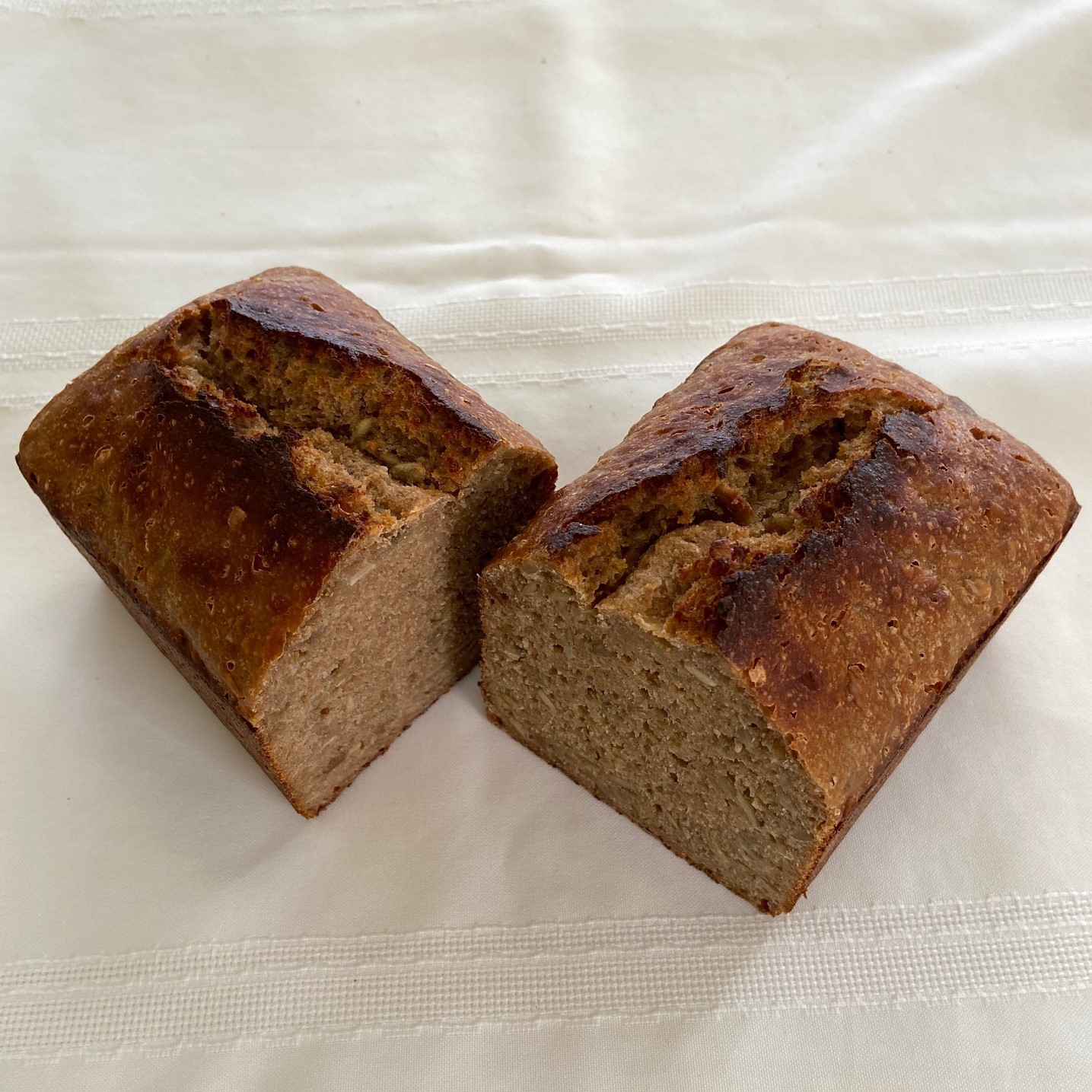 This European style rye bread is super healthy as it is 100% whole grain dark rye flour which is high in fiber and low in gluten. It is thick and dense with a sour-ish flavor profile. Not for everyone, but a classic that brings me back to my childhood when my Austrian grandmother used to bring us dark thinly sliced rye bread. Pairs great with smoked salmon, cream cheese and soft cheeses, meats and mustard.