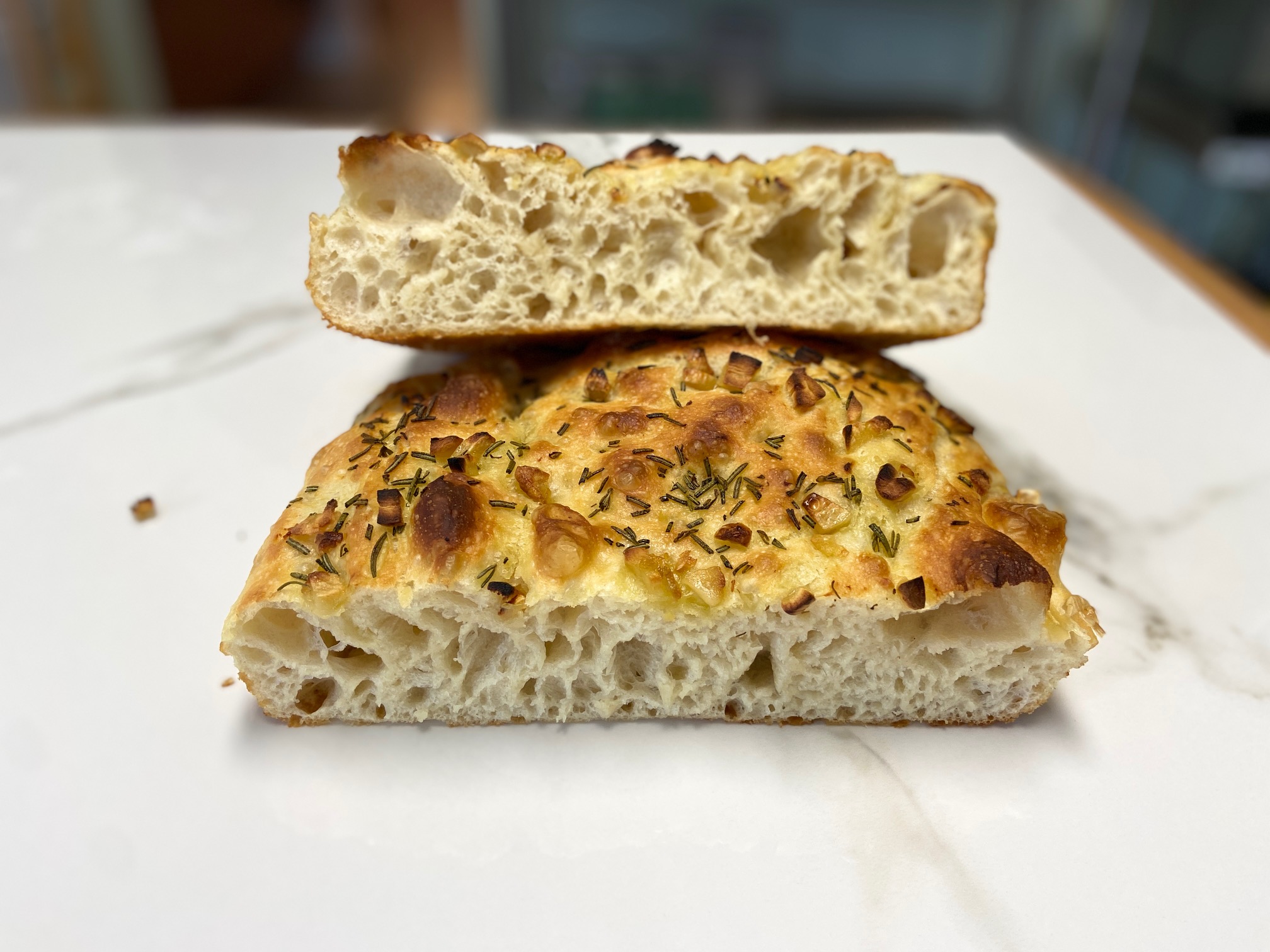 Classic Italian focaccia made with yeast (not sourdough) and LOTS of olive oil. Pick toppings of your choice, suggestions are: fresh rosemary, or fresh herbs combo (basil, sage, parsley), or Kalamata olives with Herbs de Provence. Size is 9” x 13”.